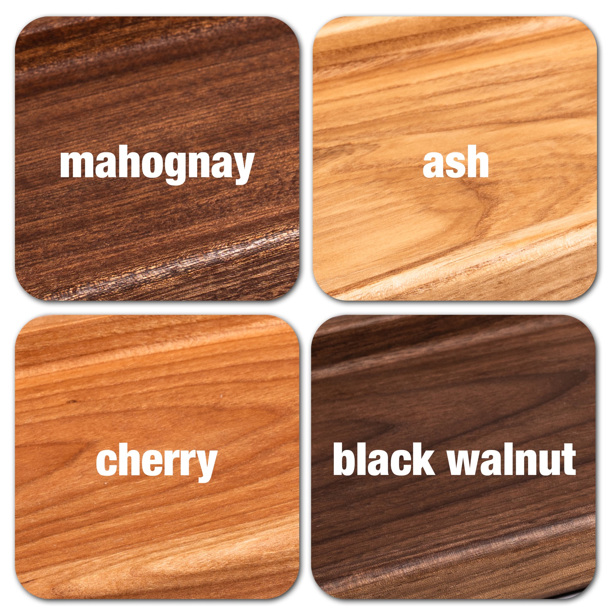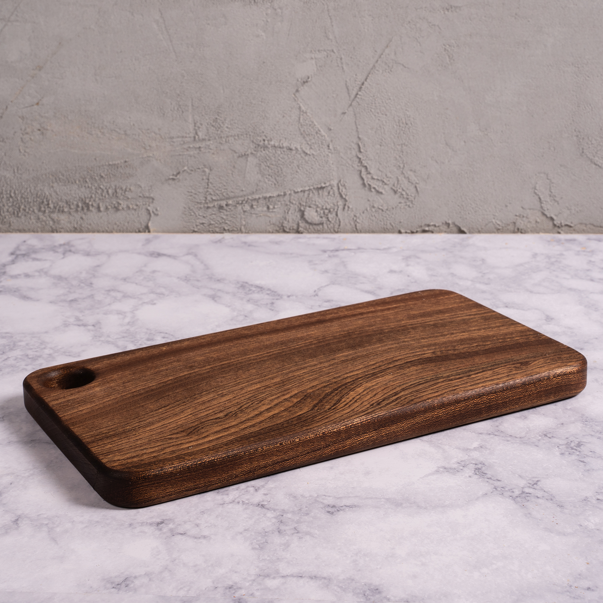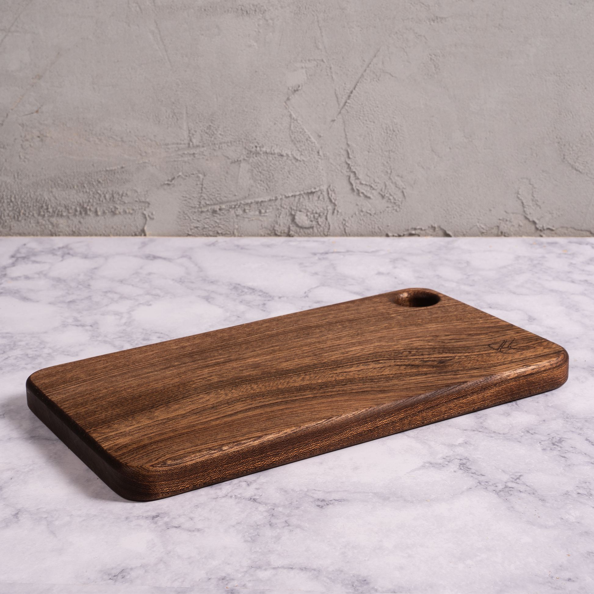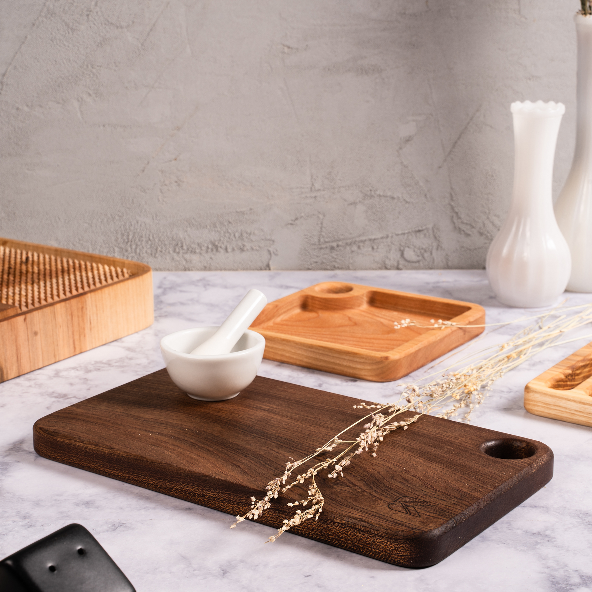 Measuring in at 6 in. x 11 in. x .8 in., this modern styled, multi-functional, large tray offers an unimpeded view and texture, of the natural wood used to create them, with the the ability to cut on both sides. Simple, beautiful + durable, what more could you ask for?